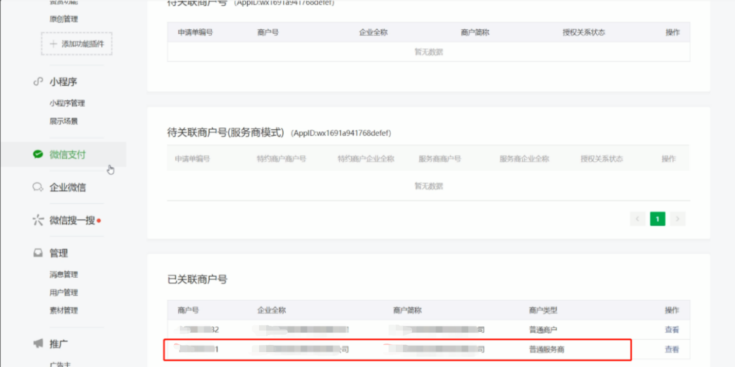 服务商的小程序appid:当前小程序的APPid,小程序也需要配置好服务商支付,有就填,没弄好小程序的就不用填,留空。